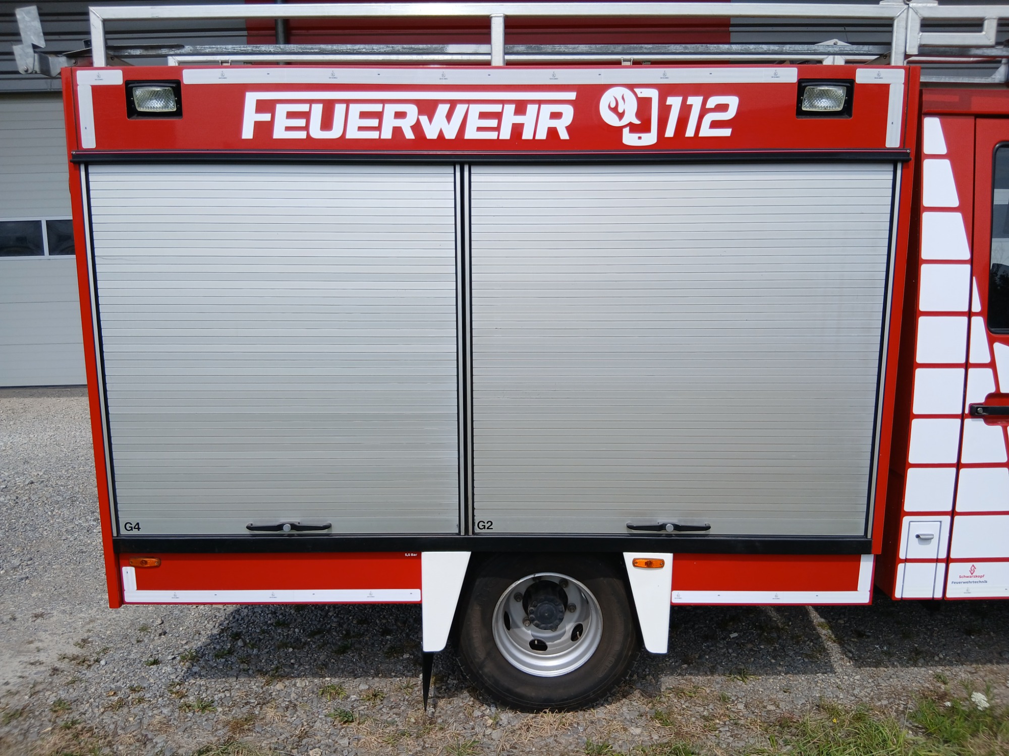 - Beschriftung Türen: “Freiwillige Feuerwehr Musterstadt”