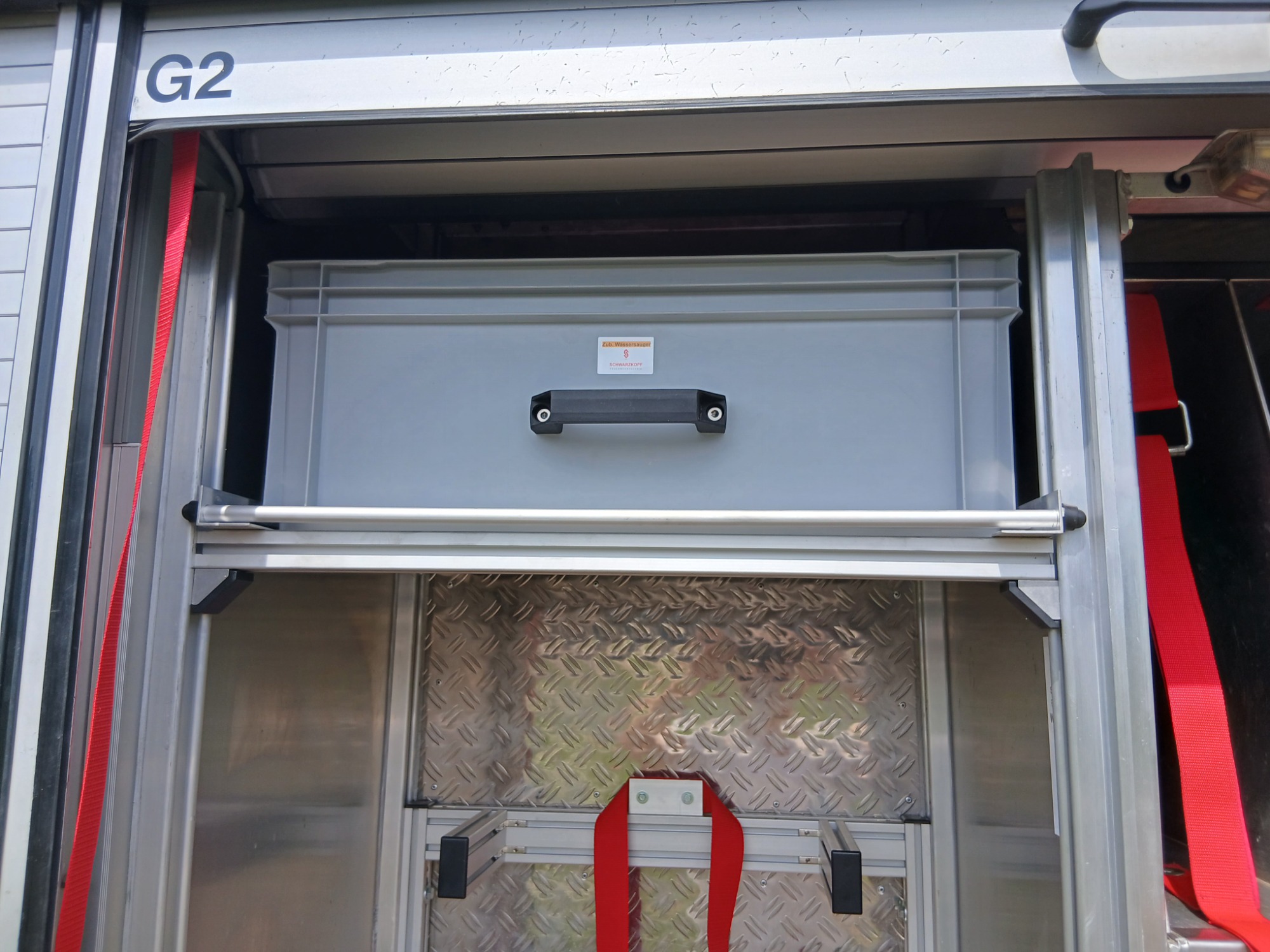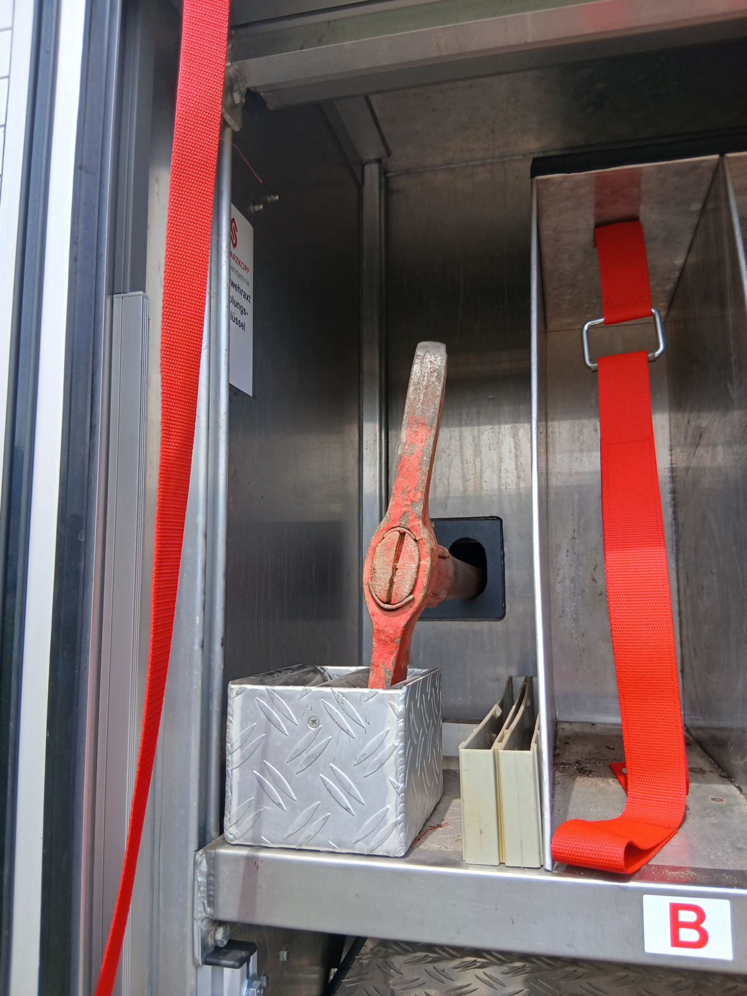 1x Alubox "Einsatzdokumentation", 2x Winkerkelle, 1x Weste Gruppenführer, 1x Schlüsseltresor, 2x Warnweste