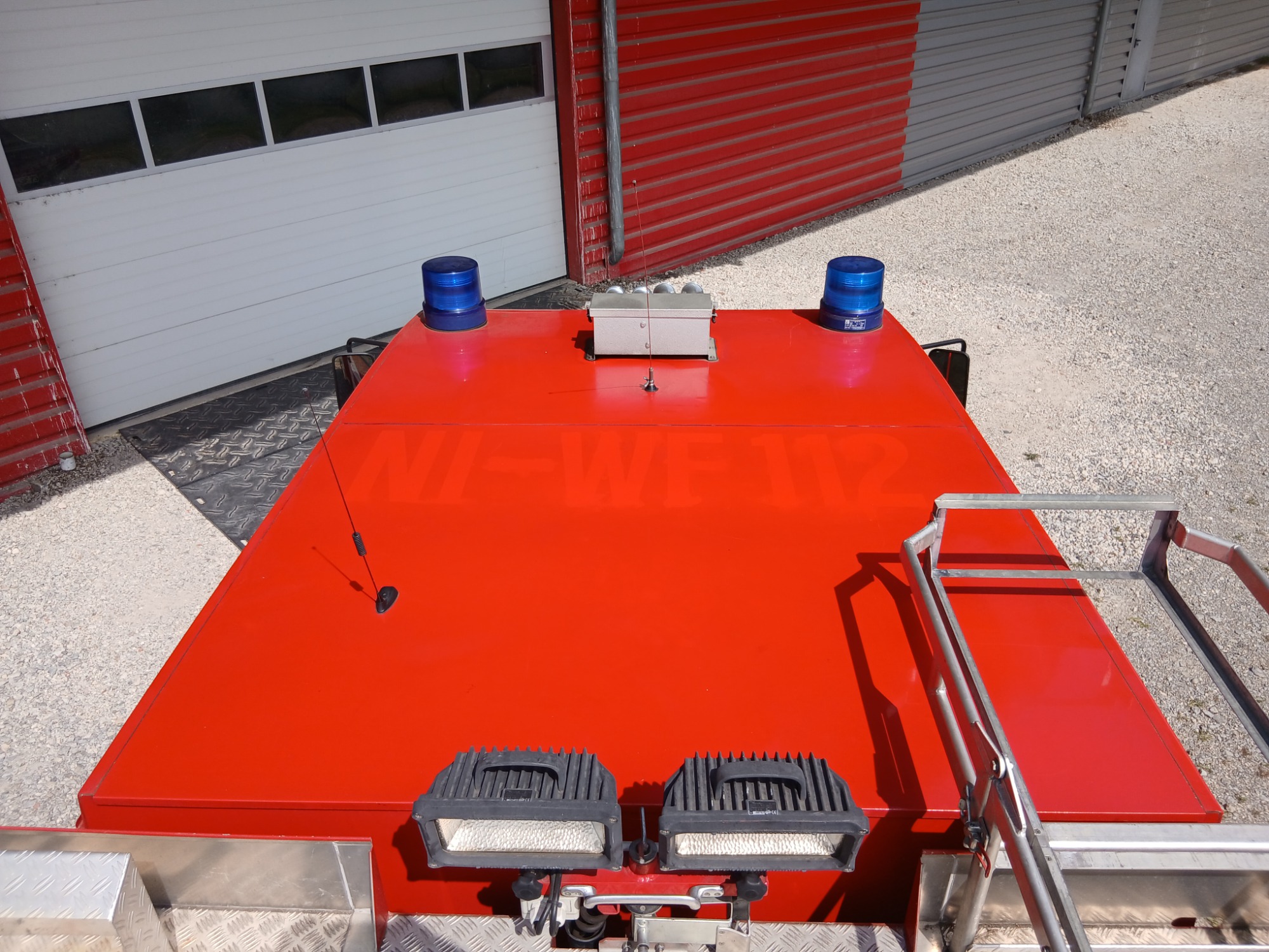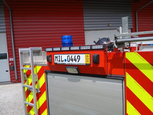Die vorhandenen Drehspiegel-Kennleuchten wurden gegen Blitzleuchten (Hersteller: Hänsch, Typ Comet B) ersetzt. An der Front wurden Led-Frontblitzer und am Heck ein Led-Heckwarnsystem nachgerüstet.