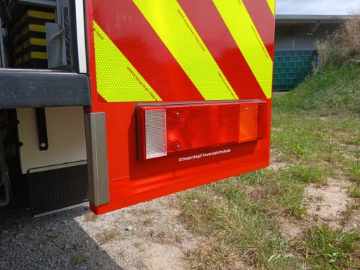 Das Heck des Aufbaus wurde neu lackiert (RAL 3000).