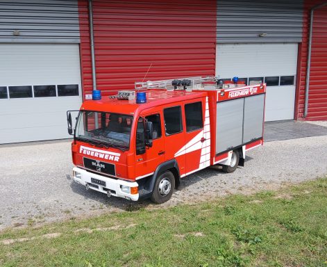Zum Verkauf steht ein generalüberholtes Löschgruppenfahrzeug, LF 8/6, auf Basis eines MAN-Fahrgestell. Der Aufbau der Firma Schlingmann beinhaltet einen Wassertank mit 600 Liter Inhalt.